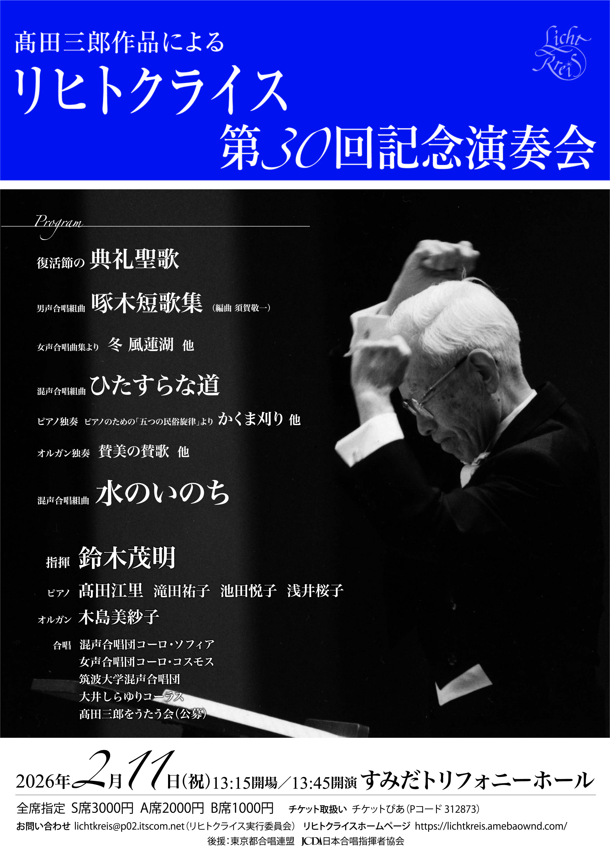 平素より皆様方にはご高配を賜り誠にありがとうございます。 コーロソフィアも参加するリヒトクライス演奏会を下記の通り開催致します。 今回は、第30回の記念演奏会となります。 たくさんの皆様のご来場をお待ち申し上げております。